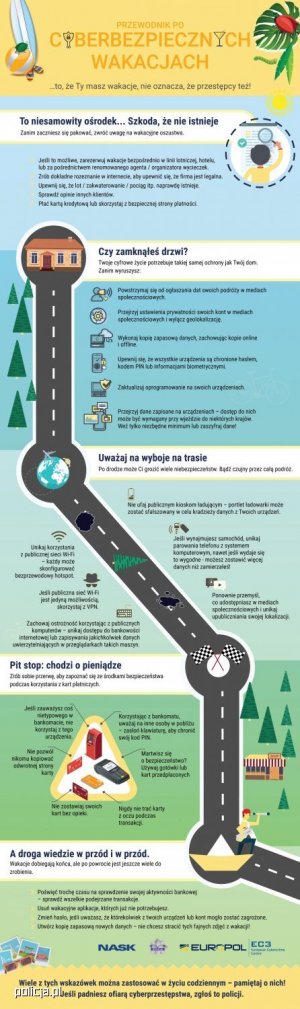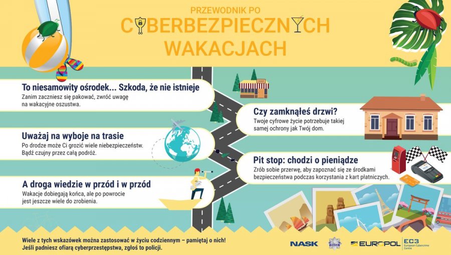 Rozpoczęły się wakacje. Planując wypoczynek trzeba zwrócić uwagę nie tylko na bezpieczeństwo w związku z zagrożeniem COVID-19, ale również chronić się przed oszustami, a ci nie próżnują. Uważajmy na nieprawdziwe oferty i „super okazje”, które mogą okazać się bardzo kosztowne. Biuro dw. z Cyberprzestępczością Komendy Głównej Policji oraz NASK (Państwowy Instytut Badawczy ) we współpracy z Europolem, ostrzegają przed nieuczciwymi ofertami internetowymi w przygotowanej kolejnej kampanii prewencyjnej.