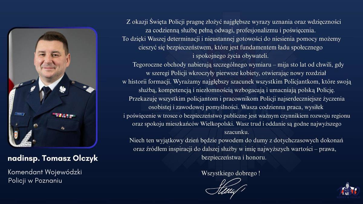 KWP - Życzenia Komendanta Wojewódzkiego Policji w Poznaniu z okazji Święta Policji Data publikacji 25.07.2025 Powrót Drukuj