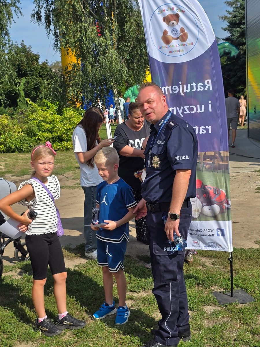 Starsi mogli skorzystać z „alkogogli” - obrazujących postrzeganie świata tak, jak po spożyciu alkoholu i pokonać slalom pomiędzy pachołkami, co okazało się dla nich nie lada wyzwaniem. Odwiedzający nasze stanowisko mogli z bliska obejrzeć wyposażenie policjanta do codziennej służby. Dzieci z chęcią kolorowały obrazki z wizerunkiem sierżanta Pyrka.